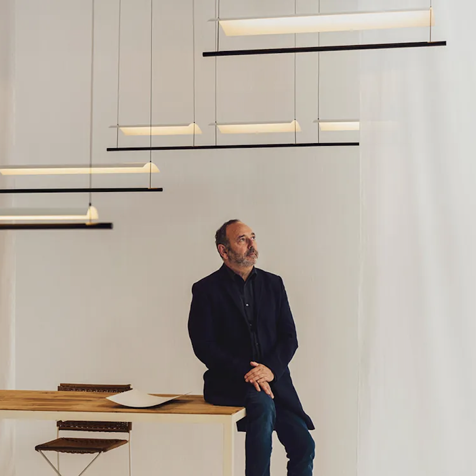 2018 有「光之詩人」美譽的Antoni Arola將對光的研究與藝術實驗一次呈現在這盞Lámina吊燈,把大眾對設計的認知提升至超越功能的層面。透過一束光與極簡俐落的曲面燈罩造型,Lámina不論大小、單獨使用或作為系統照明,都能透過無可挑惕的光感調和出理性與詩意兼具的的空間氛圍。